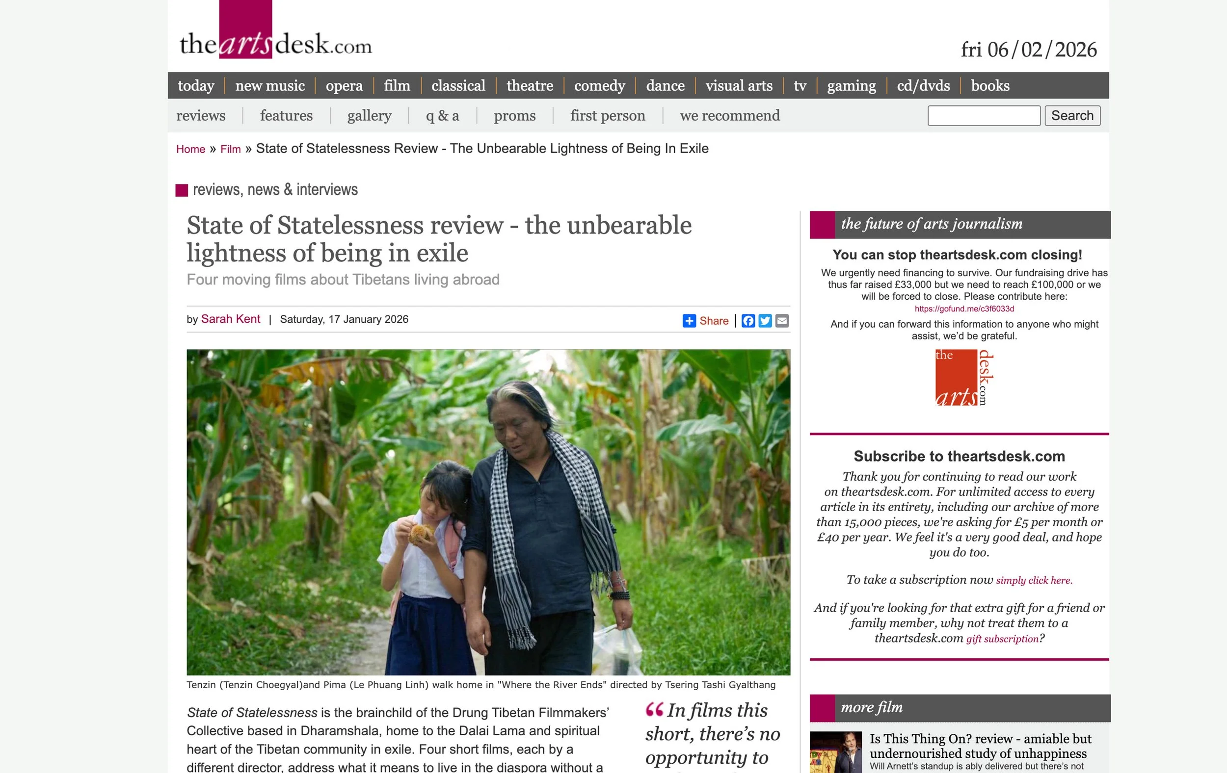 Another Mag included State of Statelessness in its January cultural roundup, highlighting the film as the first-ever Tibetan-language anthology feature and noting its impact in portraying the painful realities of a scattered people through stories of statelessness and migration.